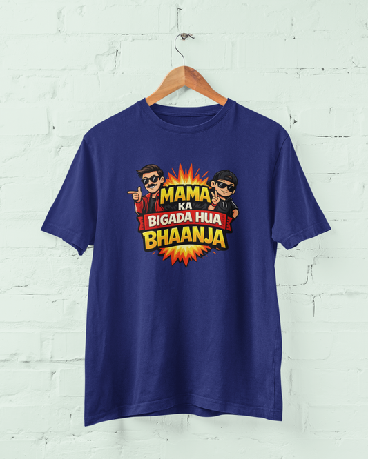 Mama Ka Bigada Hua Bhaanja Funny T-Shirt – Family Relationship Tee for Men, Boys | Plus Size Cotton M-7XL