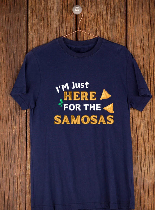 मी फक्त समोसे प्लस साइज नेव्ही ब्लू टी-शर्टसाठी आलो आहे